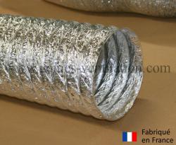 Composition de la gaine : conduit souple à paroi en complexe aluminium/polyester/aluminium montée sur une armature hélicoïdale en fil d'acier.